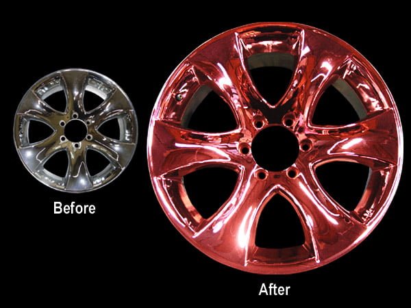 By simply adding a little of our Candy Concentrates to the clear you can achieve beautiful colored chrome effects and even a “true” brilliant gold finish.